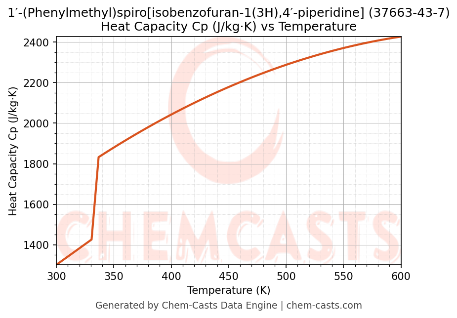 ![Heat Capacity (Cp) vs Temperature chart for 1′-(Phenylmethyl)spiro[isobenzofuran-1(3H),4′-piperidine] (CAS 37663-43-7)](https://chemcasts-prod.s3.ap-south-1.amazonaws.com/chem_plots_pconst/37663-43-7-cp.png)