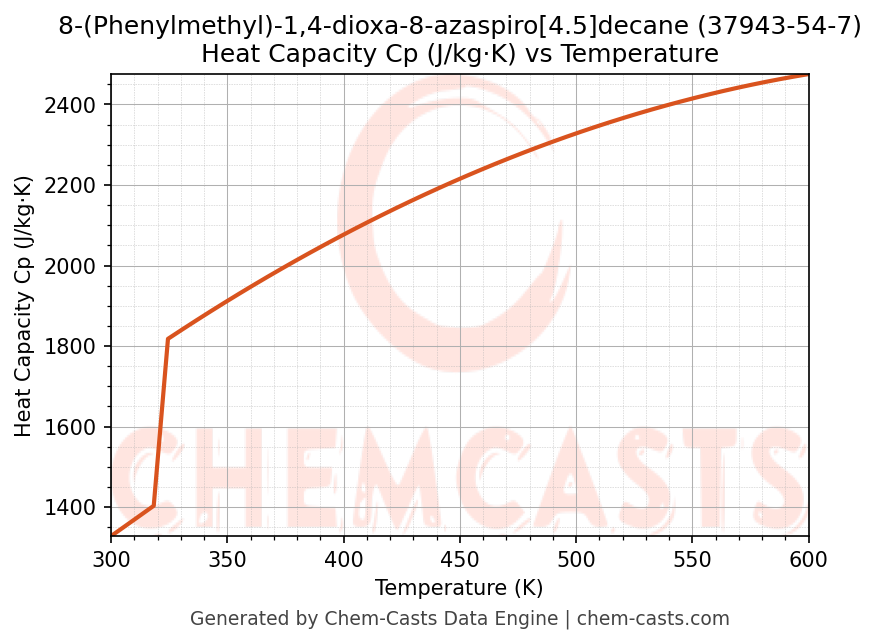 ![Heat Capacity (Cp) vs Temperature chart for 8-(Phenylmethyl)-1,4-dioxa-8-azaspiro[4.5]decane (CAS 37943-54-7)](https://chemcasts-prod.s3.ap-south-1.amazonaws.com/chem_plots_pconst/37943-54-7-cp.png)