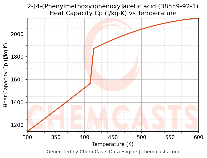 ![Heat Capacity (Cp) vs Temperature chart for 2-[4-(Phenylmethoxy)phenoxy]acetic acid (CAS 38559-92-1)](https://chemcasts-prod.s3.ap-south-1.amazonaws.com/chem_plots_pconst/38559-92-1-cp.png)
