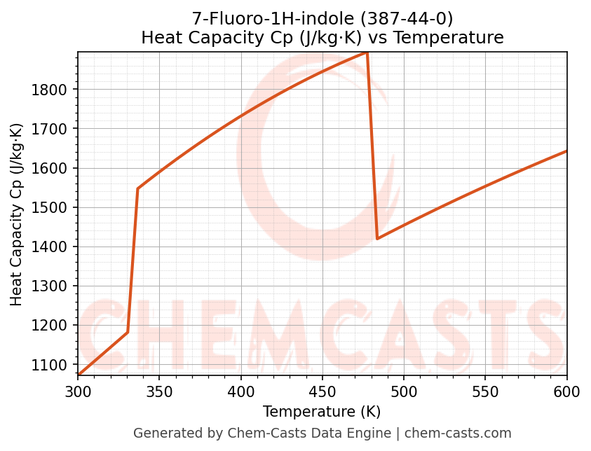 - Specific heat capacity (Cp) indicates the amount of energy required to raise the temperature of 7-Fluoro-1H-indole and is critical for energy balance and heat-exchanger design.