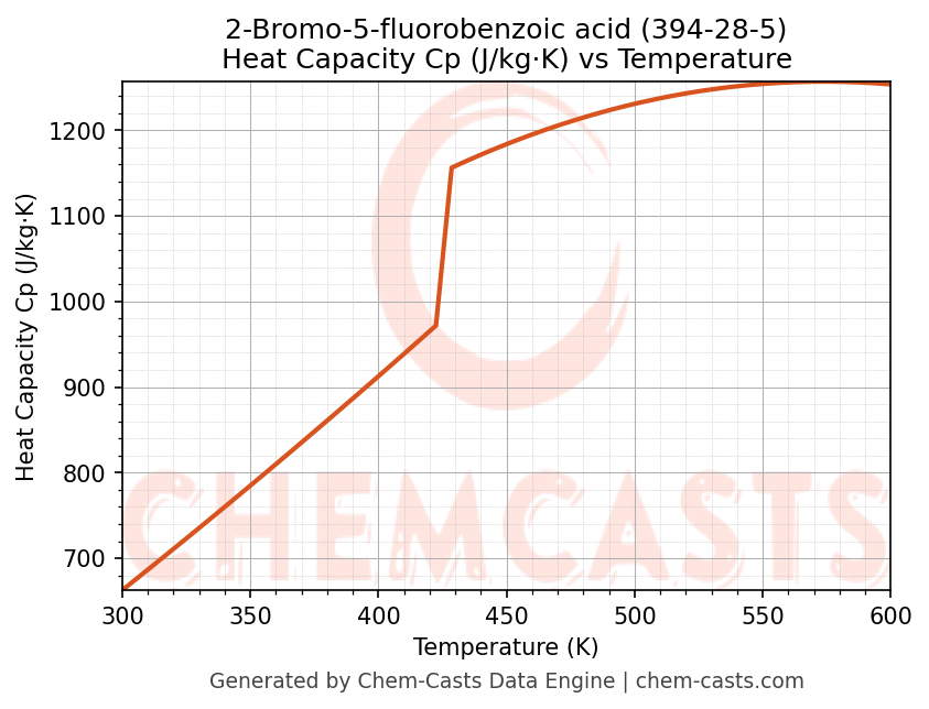 - Specific heat capacity (Cp) indicates the amount of energy required to raise the temperature of 2-Bromo-5-fluorobenzoic acid and is critical for energy balance and heat-exchanger design.
