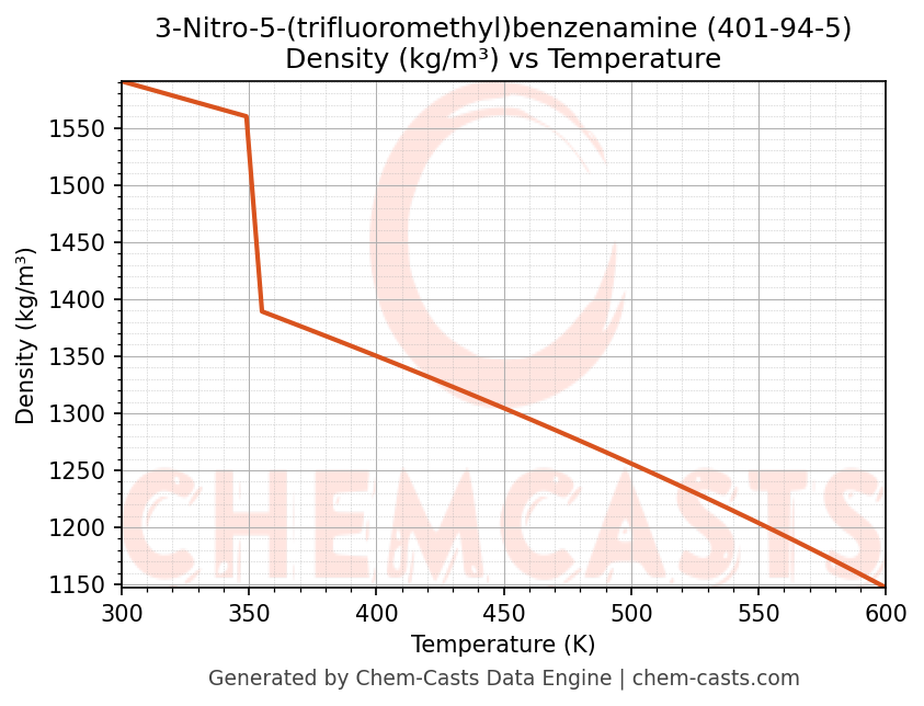 This page presents the temperature-dependent thermodynamic and transport properties of 3-Nitro-5-(trifluoromethyl)benzenamine (CAS 401-94-5) calculated at a constant pressure of 1 atm (101325 Pa) over the temperature range 250-500 K.