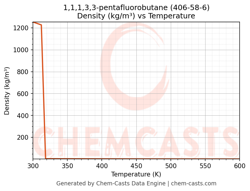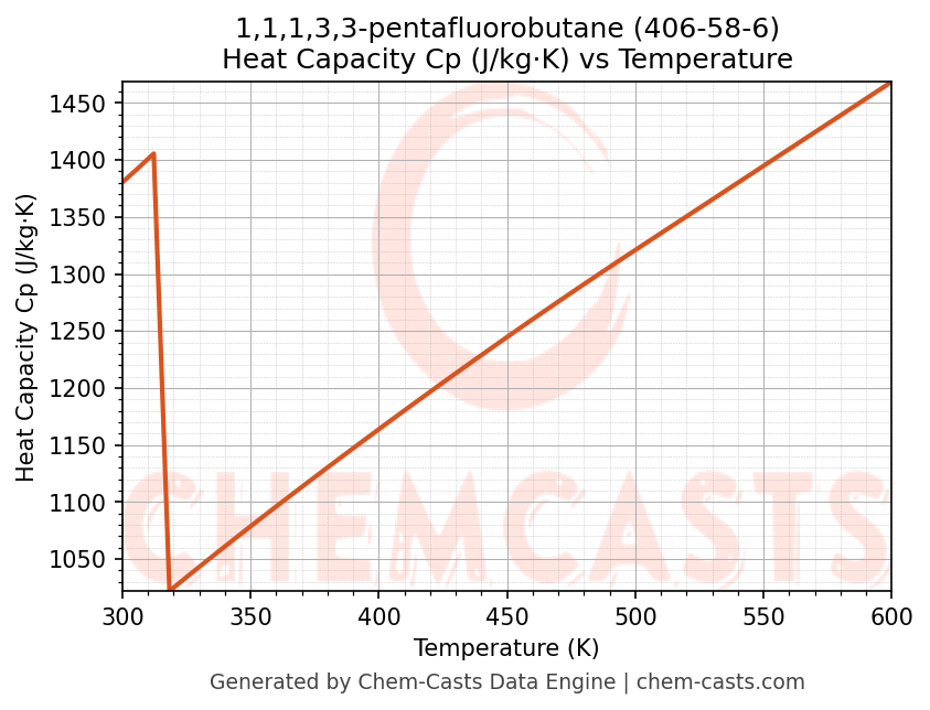 - Specific heat capacity (Cp) indicates the amount of energy required to raise the temperature of 1,1,1,3,3-pentafluorobutane and is critical for energy balance and heat-exchanger design.