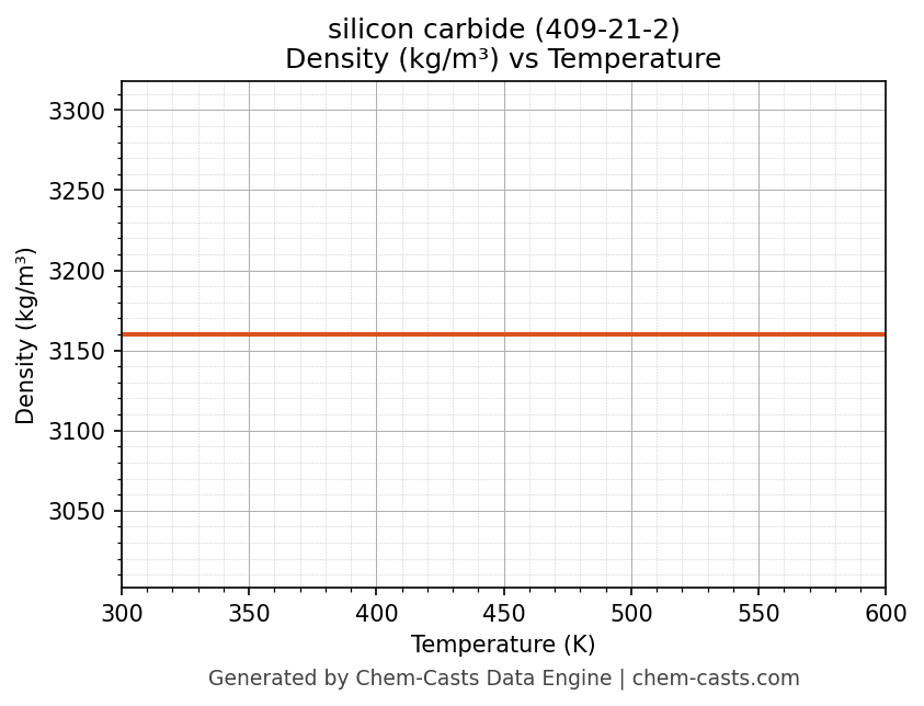 This page presents the temperature-dependent thermodynamic and transport properties of silicon carbide (CAS 409-21-2) calculated at a constant pressure of 1 atm (101325 Pa) over the temperature range 250-500 K.