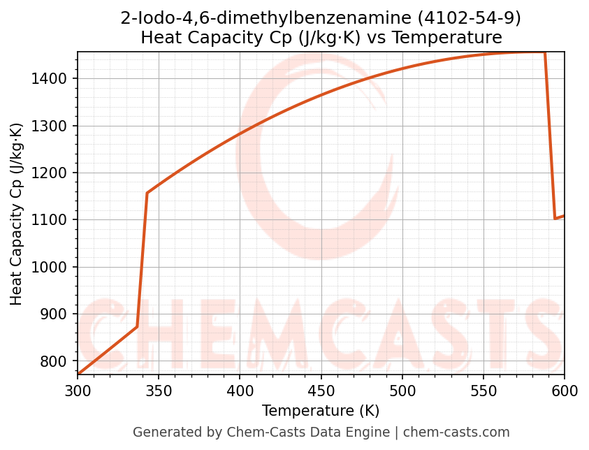 - Specific heat capacity (Cp) indicates the amount of energy required to raise the temperature of 2-Iodo-4,6-dimethylbenzenamine and is critical for energy balance and heat-exchanger design.