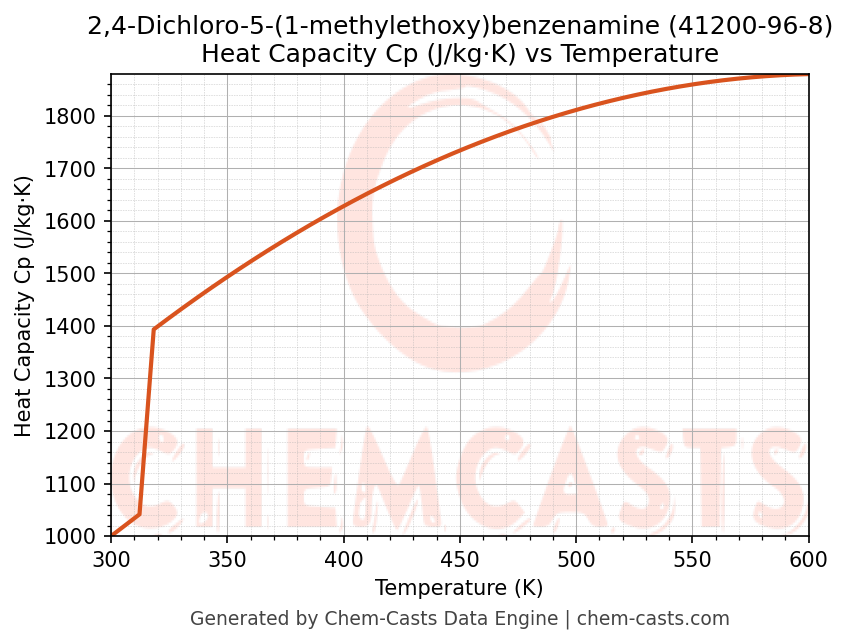 - Specific heat capacity (Cp) indicates the amount of energy required to raise the temperature of 2,4-Dichloro-5-(1-methylethoxy)benzenamine and is critical for energy balance and heat-exchanger design.