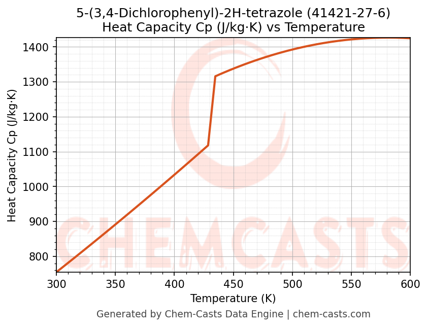 - Specific heat capacity (Cp) indicates the amount of energy required to raise the temperature of 5-(3,4-Dichlorophenyl)-2H-tetrazole and is critical for energy balance and heat-exchanger design.