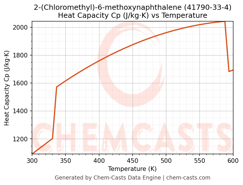 - Specific heat capacity (Cp) indicates the amount of energy required to raise the temperature of 2-(Chloromethyl)-6-methoxynaphthalene and is critical for energy balance and heat-exchanger design.