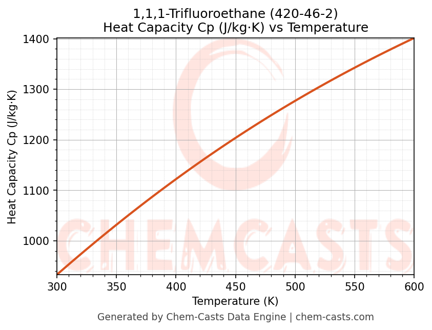- Specific heat capacity (Cp) indicates the amount of energy required to raise the temperature of 1,1,1-Trifluoroethane and is critical for energy balance and heat-exchanger design.