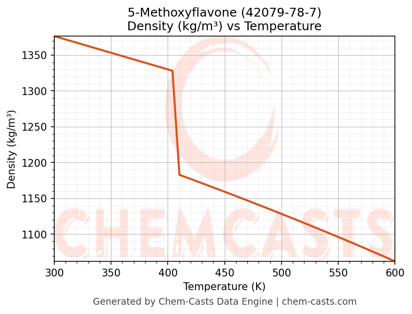 This page presents the temperature-dependent thermodynamic and transport properties of 5-Methoxyflavone (CAS 42079-78-7) calculated at a constant pressure of 1 atm (101325 Pa) over the temperature range 250-500 K.