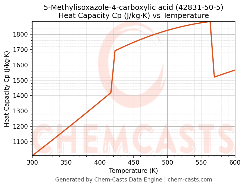 - Specific heat capacity (Cp) indicates the amount of energy required to raise the temperature of 5-Methylisoxazole-4-carboxylic acid and is critical for energy balance and heat-exchanger design.