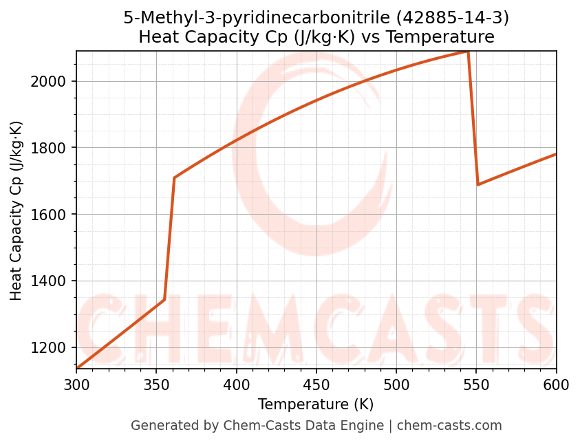 - Specific heat capacity (Cp) indicates the amount of energy required to raise the temperature of 5-Methyl-3-pyridinecarbonitrile and is critical for energy balance and heat-exchanger design.