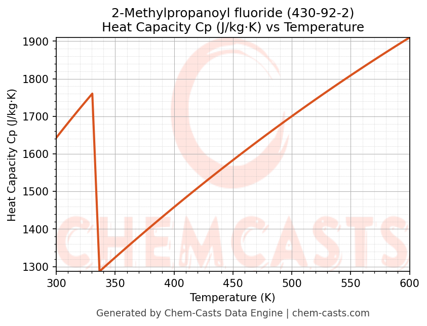- Specific heat capacity (Cp) indicates the amount of energy required to raise the temperature of 2-Methylpropanoyl fluoride and is critical for energy balance and heat-exchanger design.
