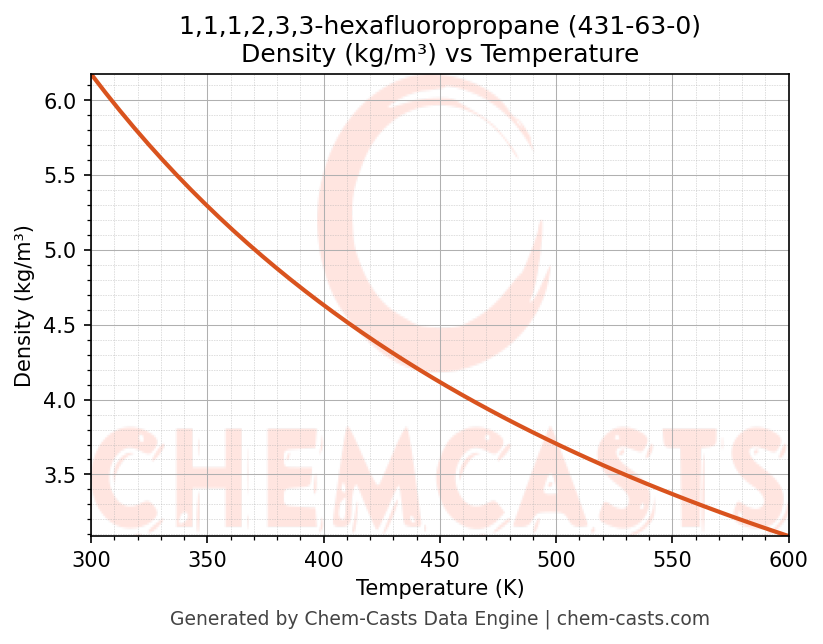 1,1,1,2,3,3-hexafluoropropane Thermodynamic Properties vs Temperature (CAS 431-63-0)