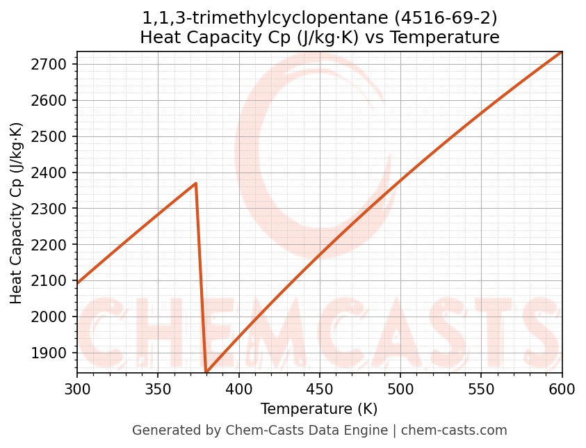 - Specific heat capacity (Cp) indicates the amount of energy required to raise the temperature of 1,1,3-trimethylcyclopentane and is critical for energy balance and heat-exchanger design.
