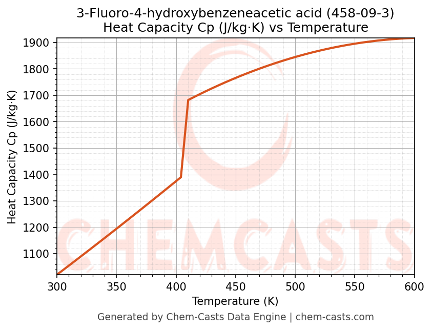 - Specific heat capacity (Cp) indicates the amount of energy required to raise the temperature of 3-Fluoro-4-hydroxybenzeneacetic acid and is critical for energy balance and heat-exchanger design.