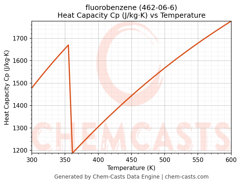 - Specific heat capacity (Cp) indicates the amount of energy required to raise the temperature of fluorobenzene and is critical for energy balance and heat-exchanger design.