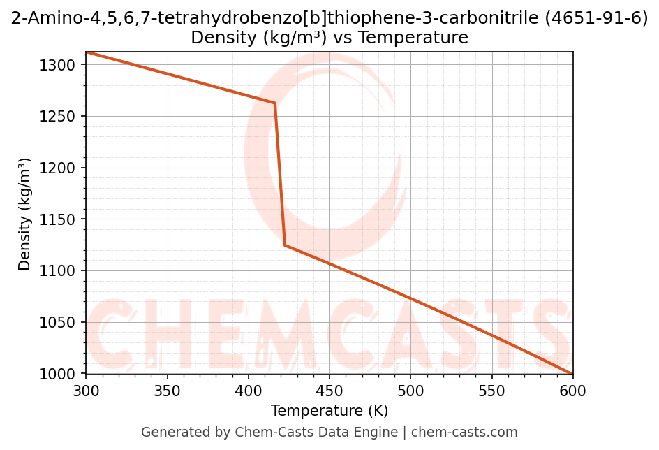 ![Density vs Temperature chart for 2-Amino-4,5,6,7-tetrahydrobenzo[b]thiophene-3-carbonitrile (CAS 4651-91-6)](https://chemcasts-prod.s3.ap-south-1.amazonaws.com/chem_plots_pconst/4651-91-6-density.png)