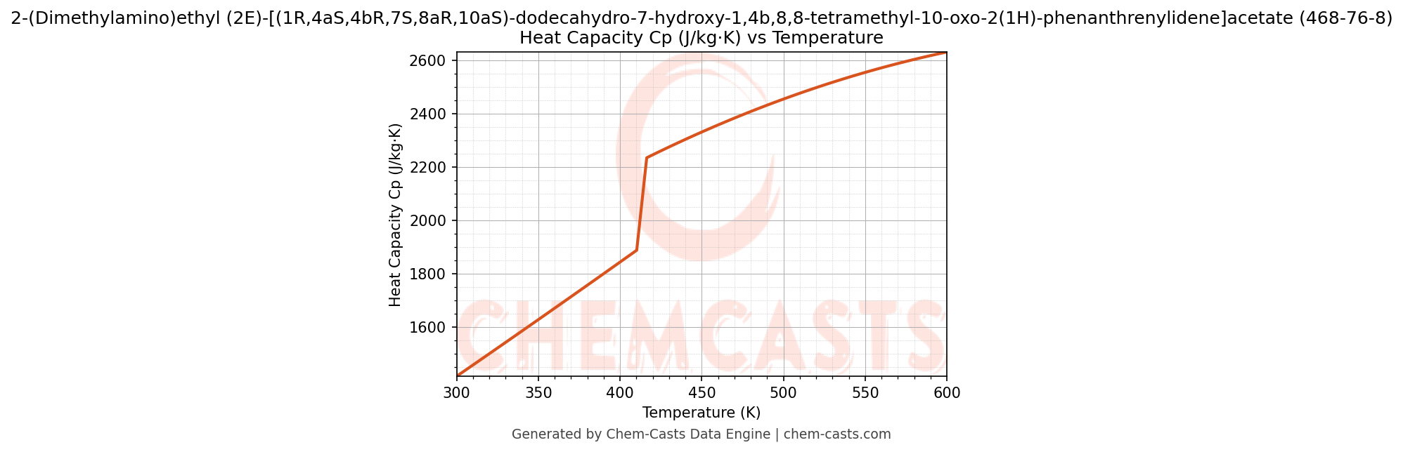 ![Heat Capacity (Cp) vs Temperature chart for 2-(Dimethylamino)ethyl (2E)-[(1R,4aS,4bR,7S,8aR,10aS)-dodecahydro-7-hydroxy-1,4b,8,8-tetramethyl-10-oxo-2(1H)-phenanthrenylidene]acetate (CAS 468-76-8)](https://chemcasts-prod.s3.ap-south-1.amazonaws.com/chem_plots_pconst/468-76-8-cp.png)