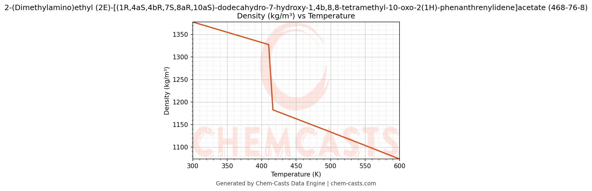 ![Density vs Temperature chart for 2-(Dimethylamino)ethyl (2E)-[(1R,4aS,4bR,7S,8aR,10aS)-dodecahydro-7-hydroxy-1,4b,8,8-tetramethyl-10-oxo-2(1H)-phenanthrenylidene]acetate (CAS 468-76-8)](https://chemcasts-prod.s3.ap-south-1.amazonaws.com/chem_plots_pconst/468-76-8-density.png)