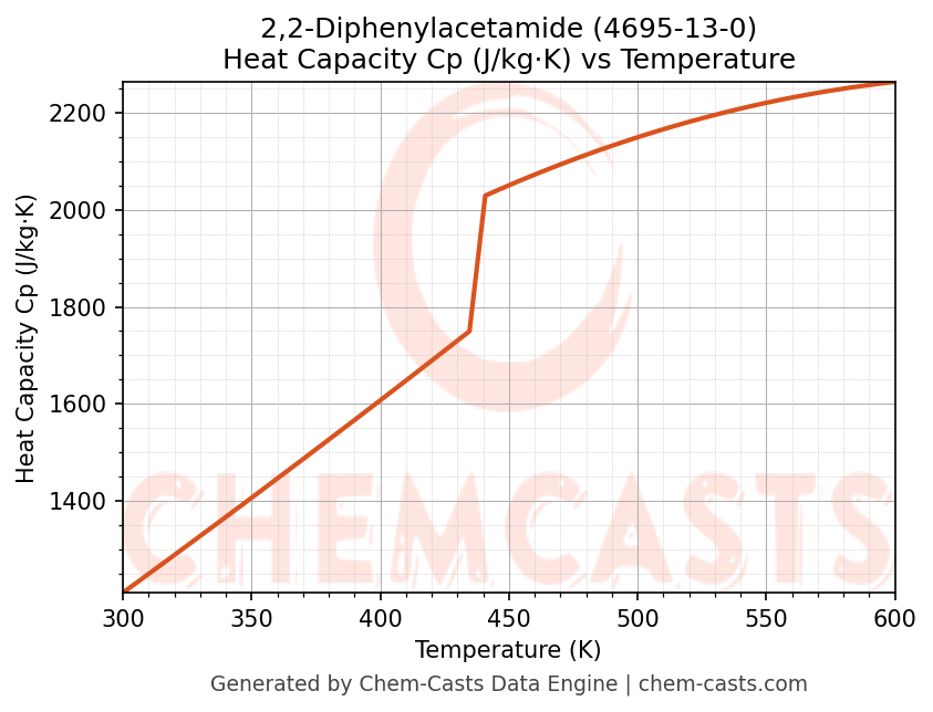 - Specific heat capacity (Cp) indicates the amount of energy required to raise the temperature of 2,2-Diphenylacetamide and is critical for energy balance and heat-exchanger design.