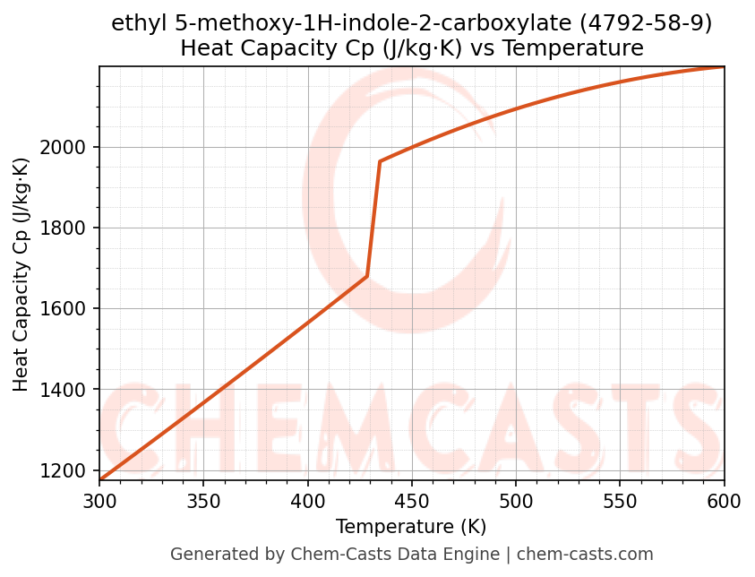 - Specific heat capacity (Cp) indicates the amount of energy required to raise the temperature of ethyl 5-methoxy-1H-indole-2-carboxylate and is critical for energy balance and heat-exchanger design.