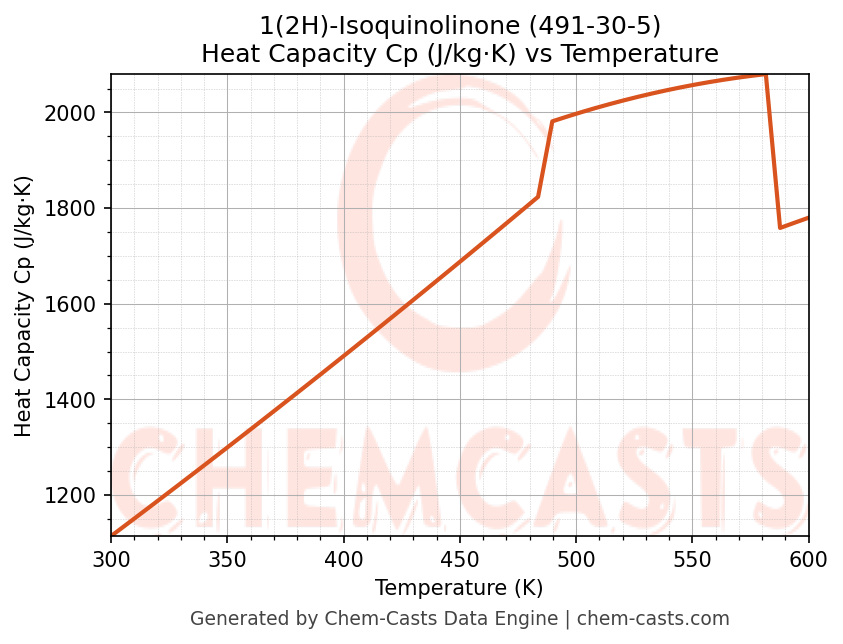 - Specific heat capacity (Cp) indicates the amount of energy required to raise the temperature of 1(2H)-Isoquinolinone and is critical for energy balance and heat-exchanger design.