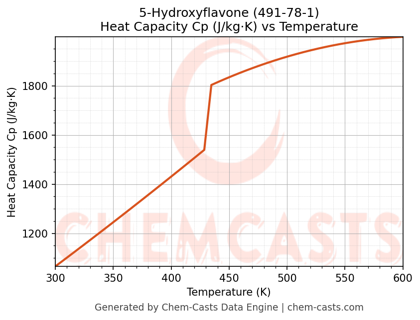 - Specific heat capacity (Cp) indicates the amount of energy required to raise the temperature of 5-Hydroxyflavone and is critical for energy balance and heat-exchanger design.