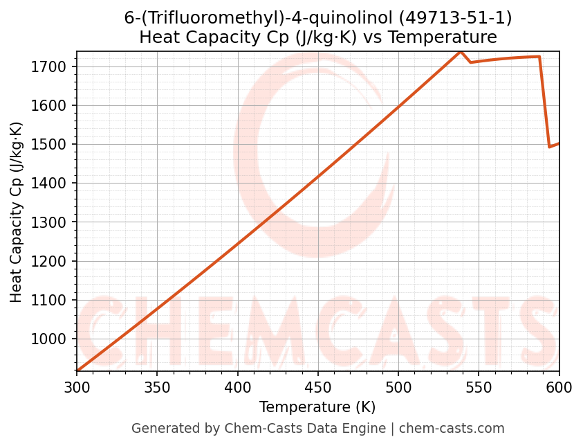 - Specific heat capacity (Cp) indicates the amount of energy required to raise the temperature of 6-(Trifluoromethyl)-4-quinolinol and is critical for energy balance and heat-exchanger design.
