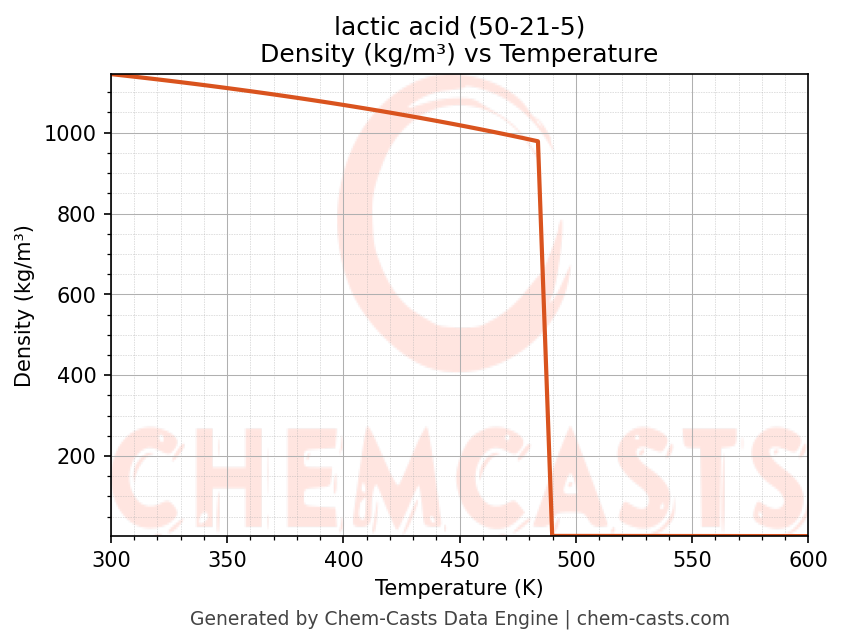 lactic acid Thermodynamic Properties vs Temperature (CAS 50-21-5)
