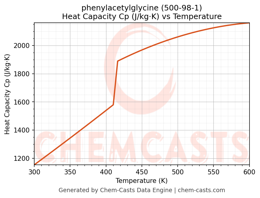 - Specific heat capacity (Cp) indicates the amount of energy required to raise the temperature of phenylacetylglycine and is critical for energy balance and heat-exchanger design.