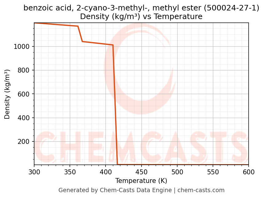 - Specific heat capacity (Cp) indicates the amount of energy required to raise the temperature of benzoic acid, 2-cyano-3-methyl-, methyl ester and is critical for energy balance and heat-exchanger design.