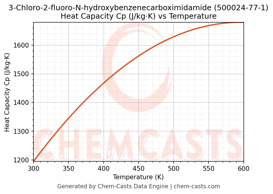 - Specific heat capacity (Cp) indicates the amount of energy required to raise the temperature of 3-Chloro-2-fluoro-N-hydroxybenzenecarboximidamide and is critical for energy balance and heat-exchanger design.