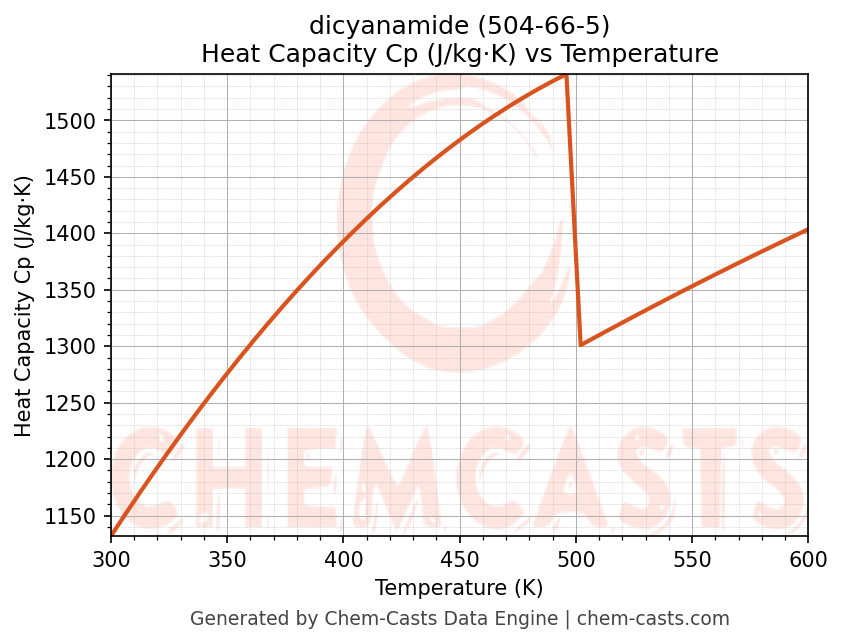 - Specific heat capacity (Cp) indicates the amount of energy required to raise the temperature of dicyanamide and is critical for energy balance and heat-exchanger design.