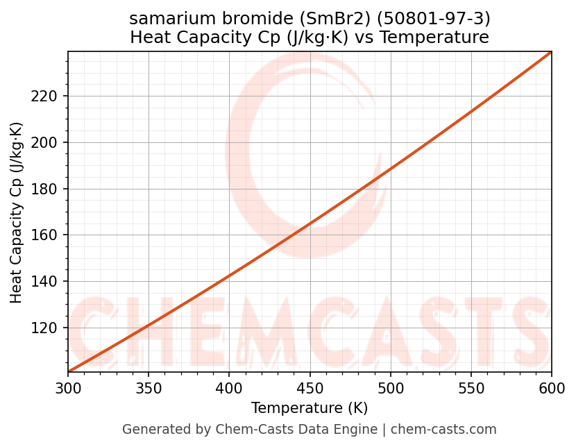- Specific heat capacity (Cp) indicates the amount of energy required to raise the temperature of samarium bromide (SmBr2) and is critical for energy balance and heat-exchanger design.