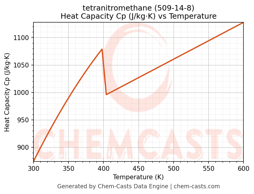 - Specific heat capacity (Cp) indicates the amount of energy required to raise the temperature of tetranitromethane and is critical for energy balance and heat-exchanger design.