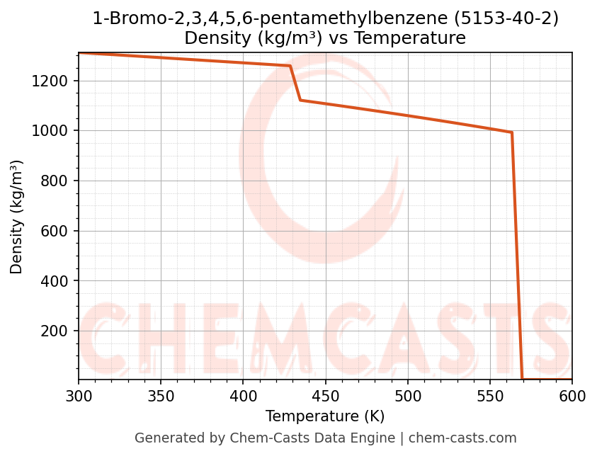 1-Bromo-2,3,4,5,6-pentamethylbenzene Thermodynamic Properties vs Temperature (CAS 5153-40-2)