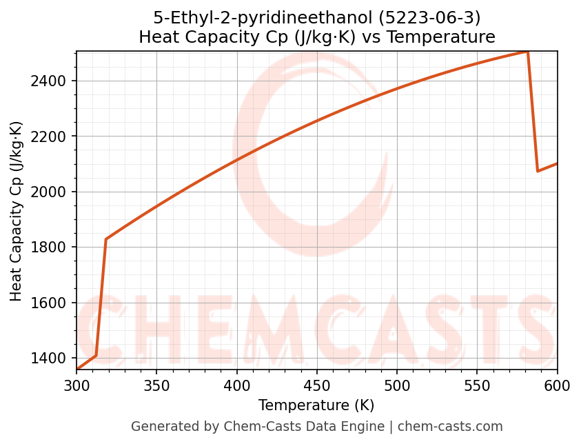 - Specific heat capacity (Cp) indicates the amount of energy required to raise the temperature of 5-Ethyl-2-pyridineethanol and is critical for energy balance and heat-exchanger design.