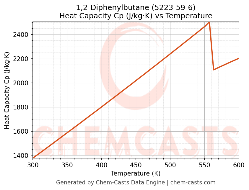 - Specific heat capacity (Cp) indicates the amount of energy required to raise the temperature of 1,2-Diphenylbutane and is critical for energy balance and heat-exchanger design.