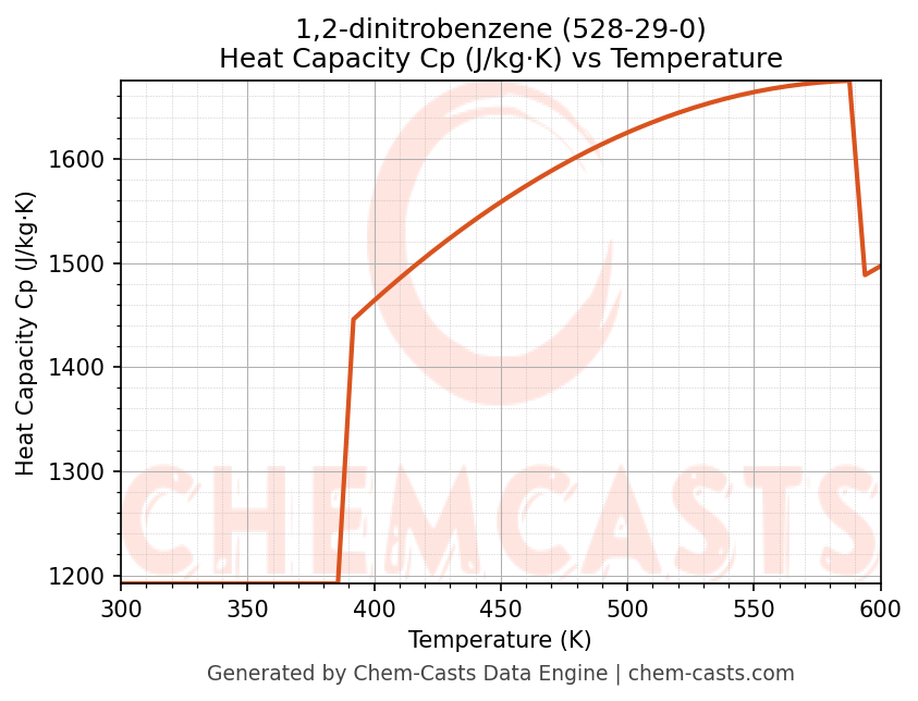 - Specific heat capacity (Cp) indicates the amount of energy required to raise the temperature of 1,2-dinitrobenzene and is critical for energy balance and heat-exchanger design.