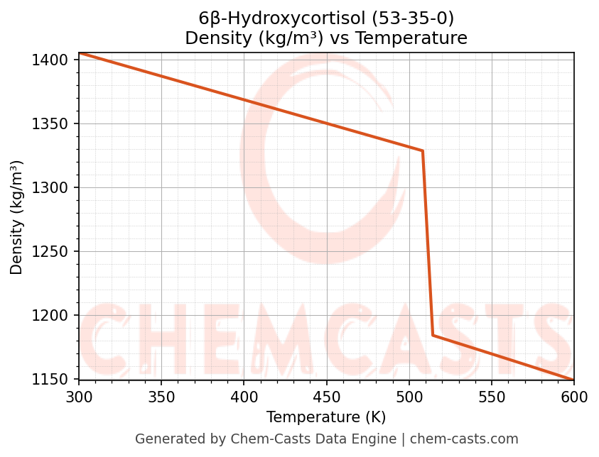This page presents the temperature-dependent thermodynamic and transport properties of 6β-Hydroxycortisol (CAS 53-35-0) calculated at a constant pressure of 1 atm (101325 Pa) over the temperature range 250-500 K.