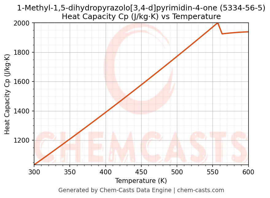 ![Heat Capacity (Cp) vs Temperature chart for 1-Methyl-1,5-dihydropyrazolo[3,4-d]pyrimidin-4-one (CAS 5334-56-5)](https://chemcasts-prod.s3.ap-south-1.amazonaws.com/chem_plots_pconst/5334-56-5-cp.png)