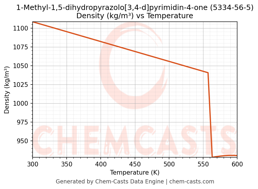 ![Density vs Temperature chart for 1-Methyl-1,5-dihydropyrazolo[3,4-d]pyrimidin-4-one (CAS 5334-56-5)](https://chemcasts-prod.s3.ap-south-1.amazonaws.com/chem_plots_pconst/5334-56-5-density.png)