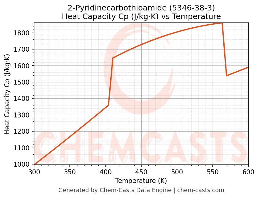 - Specific heat capacity (Cp) indicates the amount of energy required to raise the temperature of 2-Pyridinecarbothioamide and is critical for energy balance and heat-exchanger design.