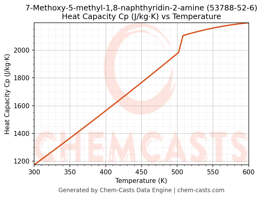 - Specific heat capacity (Cp) indicates the amount of energy required to raise the temperature of 7-Methoxy-5-methyl-1,8-naphthyridin-2-amine and is critical for energy balance and heat-exchanger design.