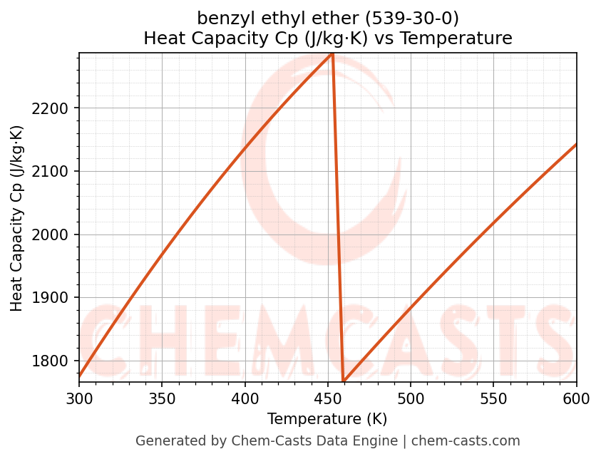 - Specific heat capacity (Cp) indicates the amount of energy required to raise the temperature of benzyl ethyl ether and is critical for energy balance and heat-exchanger design.