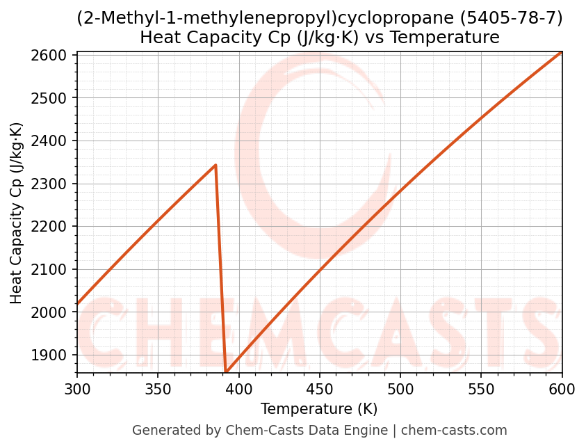 - Specific heat capacity (Cp) indicates the amount of energy required to raise the temperature of (2-Methyl-1-methylenepropyl)cyclopropane and is critical for energy balance and heat-exchanger design.