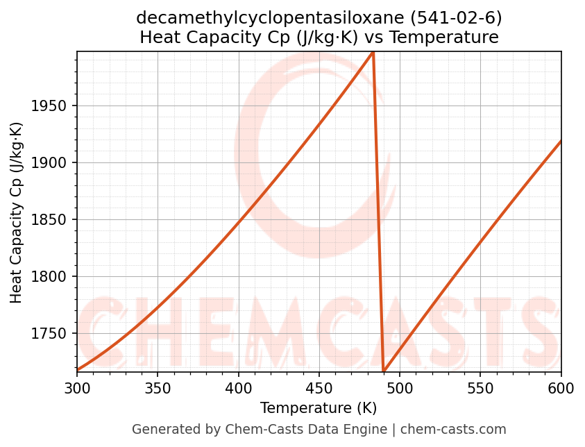 - Specific heat capacity (Cp) indicates the amount of energy required to raise the temperature of decamethylcyclopentasiloxane and is critical for energy balance and heat-exchanger design.