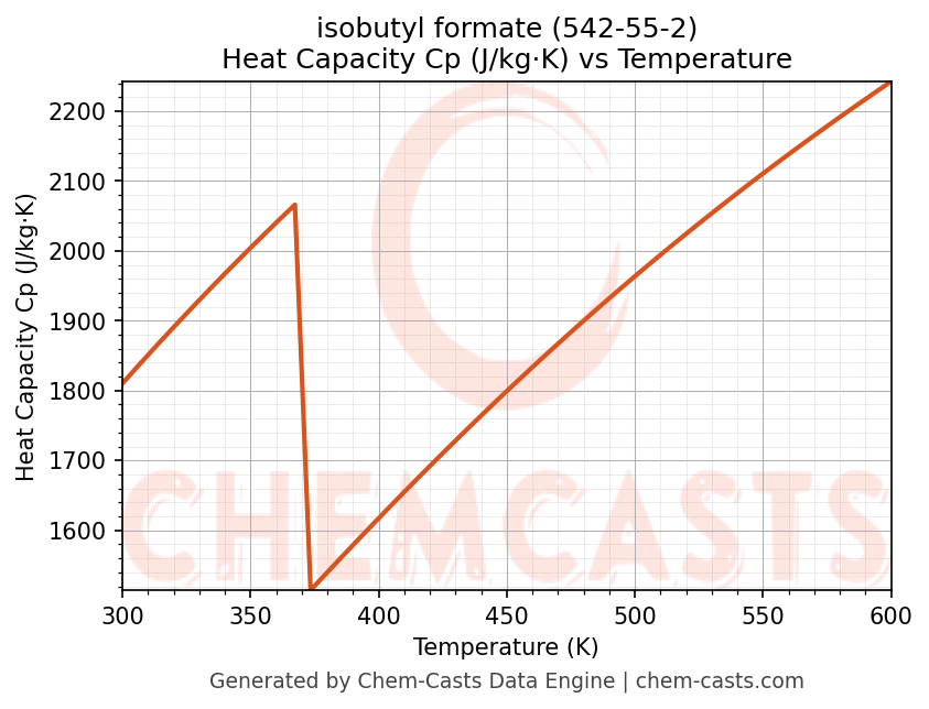 - Specific heat capacity (Cp) indicates the amount of energy required to raise the temperature of isobutyl formate and is critical for energy balance and heat-exchanger design.