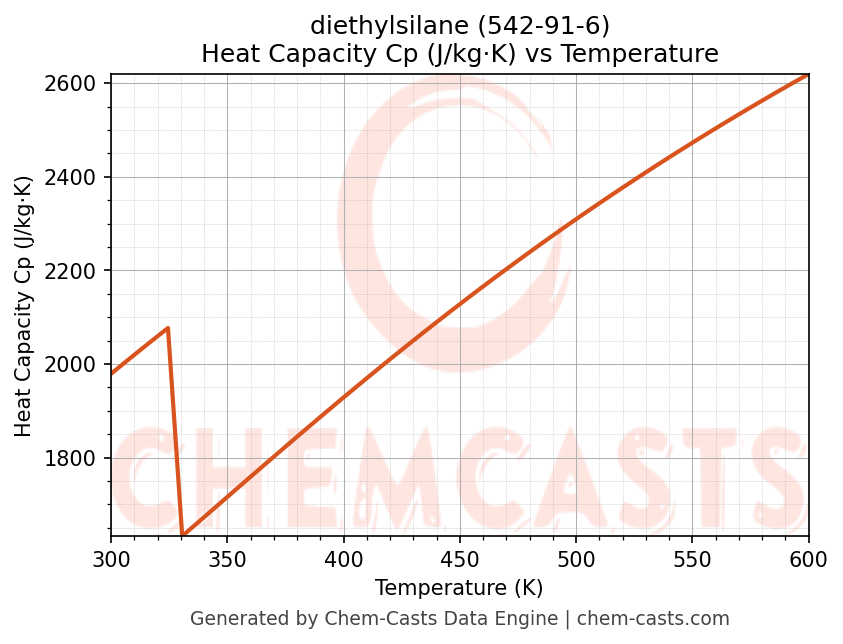 - Specific heat capacity (Cp) indicates the amount of energy required to raise the temperature of diethylsilane and is critical for energy balance and heat-exchanger design.